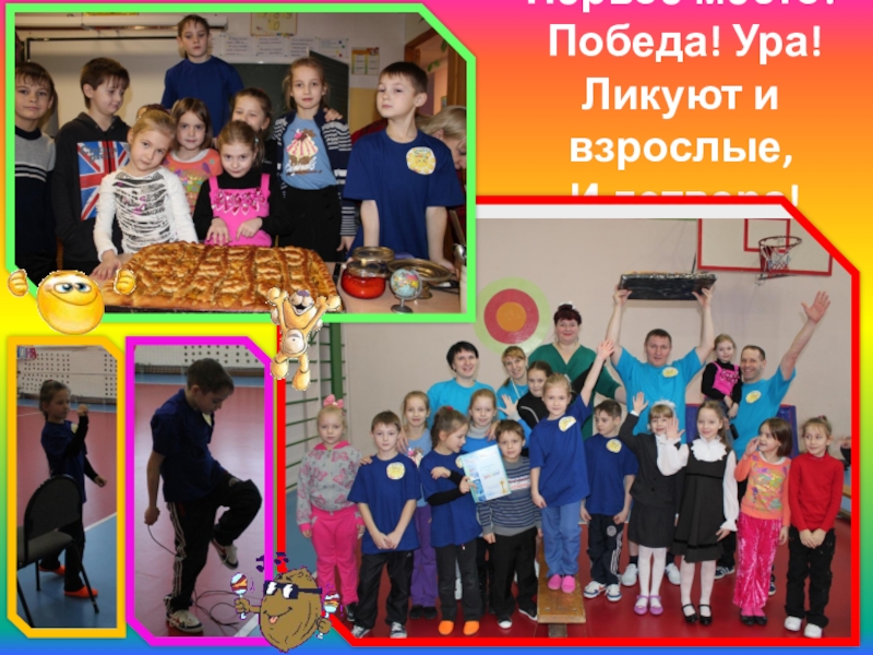 Слайд 17Первое место! Победа! Ура! Ликуют и взрослые, И детвора!