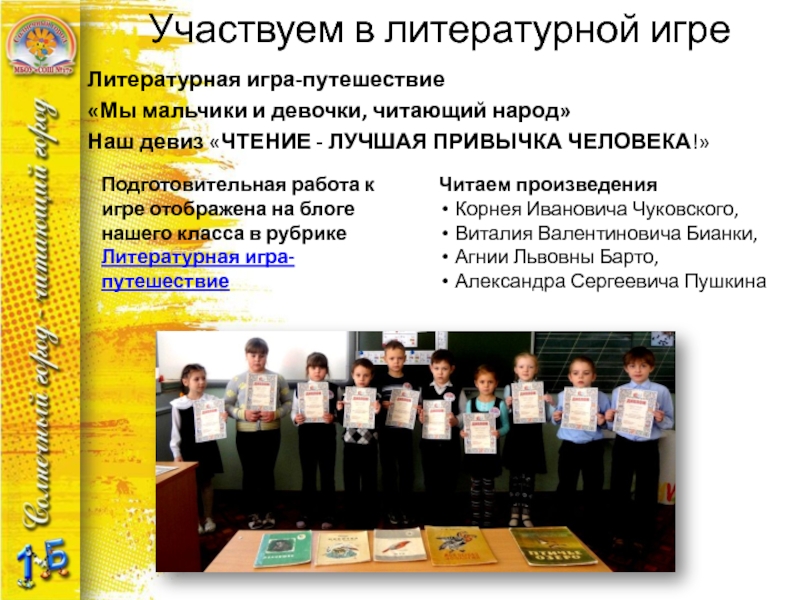 Подготовительная работа к игре отображена на блоге нашего класса в рубрике Литературная игра-путешествие