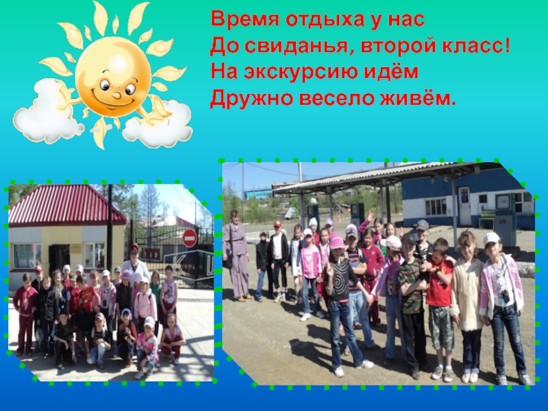 Слайд 22Время отдыха у нас До свиданья, второй класс! На экскурсию идём Дружно весело