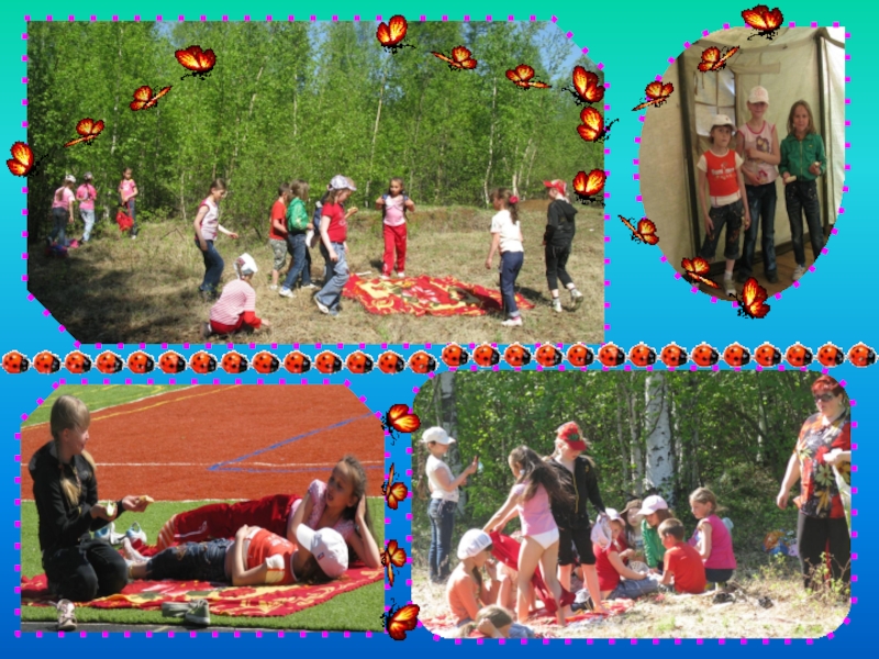 Слайд 24Летним солнечным деньком Обдувает ветерком. Мы в поход идём с друзьями Не угнаться вам