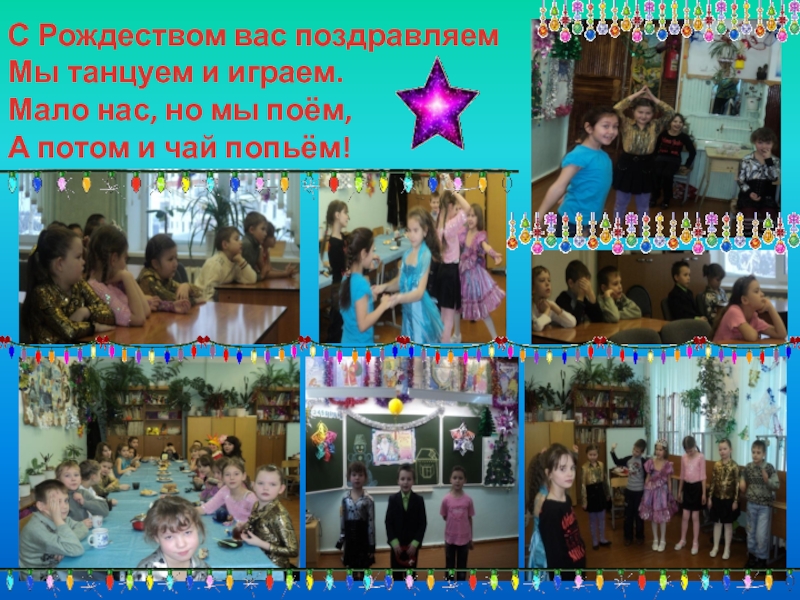 С Рождеством вас поздравляем Мы танцуем и играем. Мало нас, но мы поём, А потом и чай