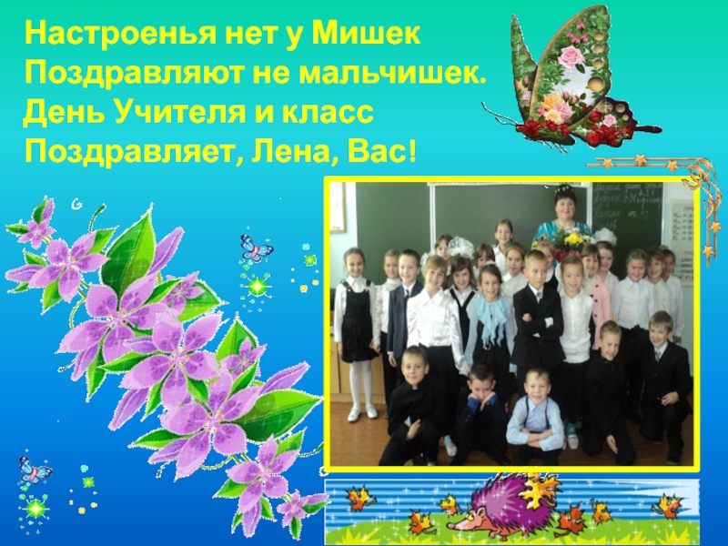 Настроенья нет у Мишек Поздравляют не мальчишек. День Учителя и класс Поздравляет, Лена, Вас!
