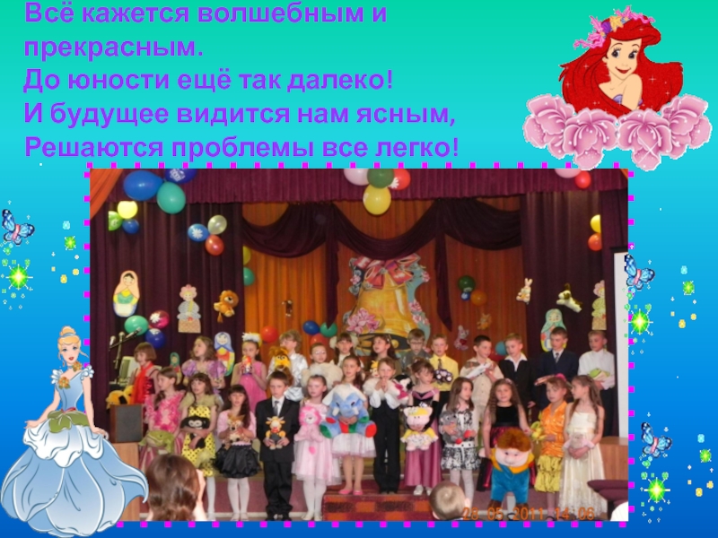 Всё кажется волшебным и прекрасным. До юности ещё так далеко! И будущее видится нам ясным, Решаются проблемы