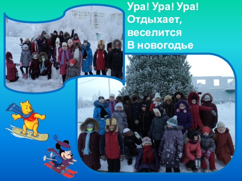 Слайд 17Зимние каникулы. Ура! Ура! Ура! Отдыхает, веселится В новогодье детвора.