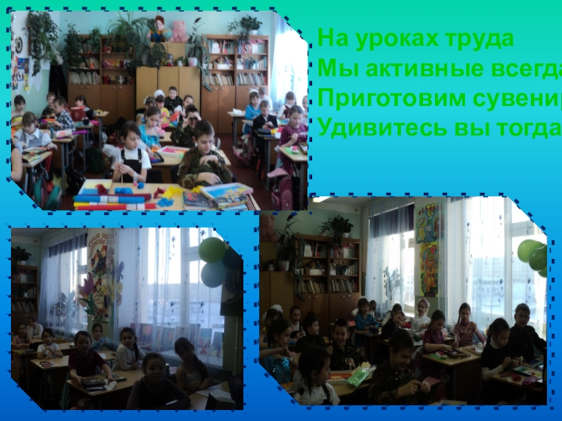 Слайд 21На уроках труда Мы активные всегда. Приготовим сувениры Удивитесь вы тогда!