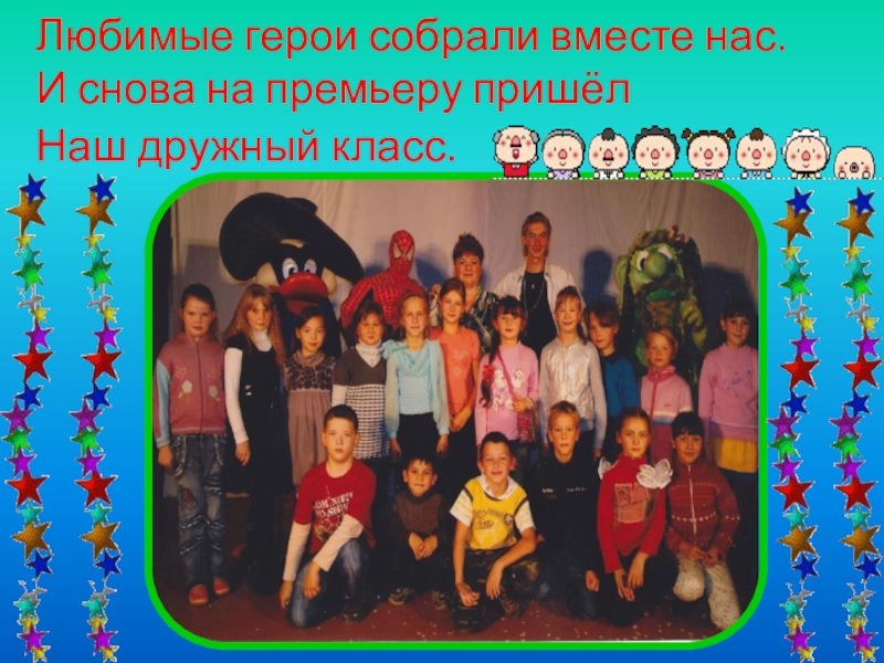 Слайд 5Любимые герои собрали вместе нас. И снова на премьеру пришёл Наш дружный класс.