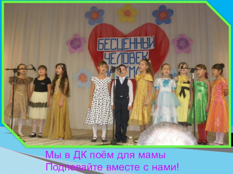 Слайд 10Мы в ДК поём для мамы Подпевайте вместе с нами!