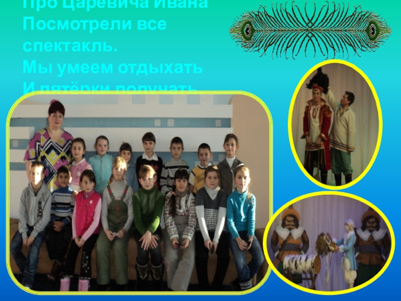 Слайд 11Про Царевича Ивана Посмотрели все спектакль. Мы умеем отдыхать И пятёрки получать.