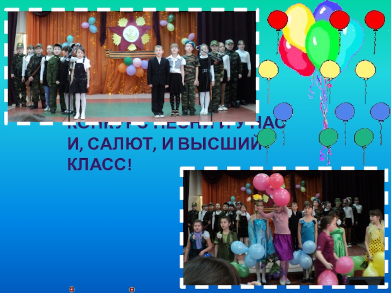 Слайд 23Конкурс песни и у нас и, салют, и высший класс!