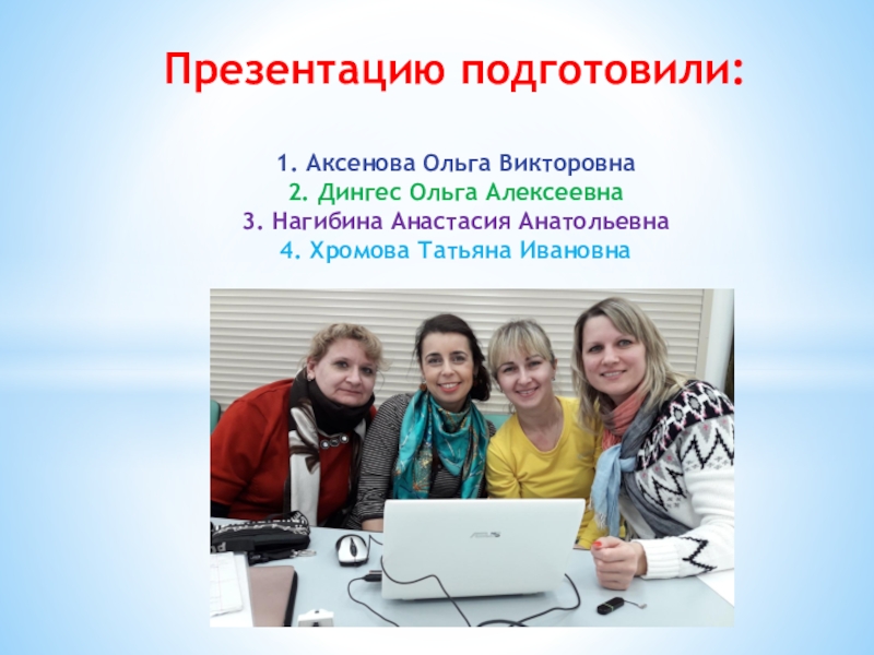 Презентацию подготовили:  1. Аксенова Ольга Викторовна 2. Дингес Ольга Алексеевна 3. Нагибина Анастасия Анатольевна 4. Хромова