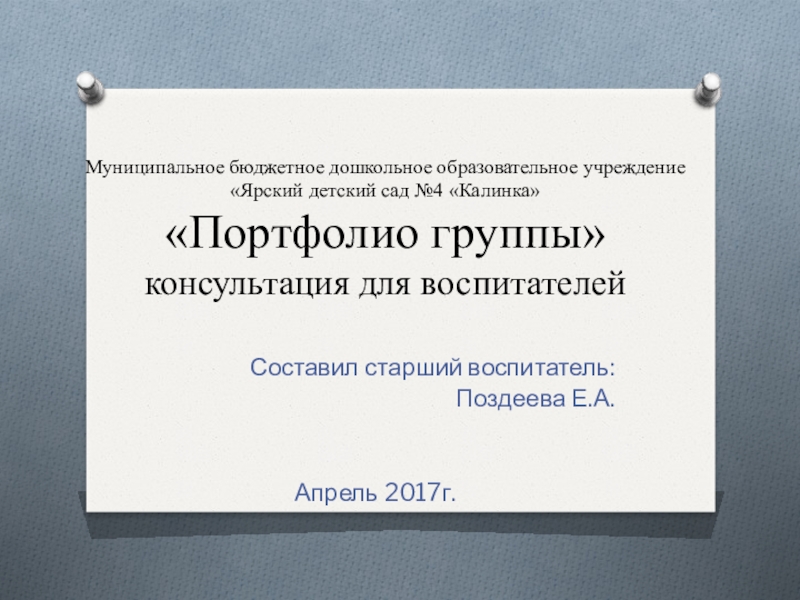 К оформлению группового «Портфолио» педагог может