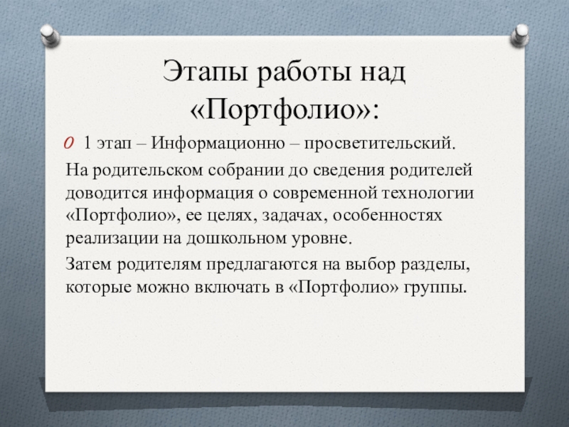 Слайд 16Этапы работы над «Портфолио»