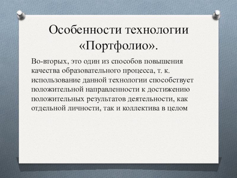 Слайд 2Особенности технологии «Портфолио».