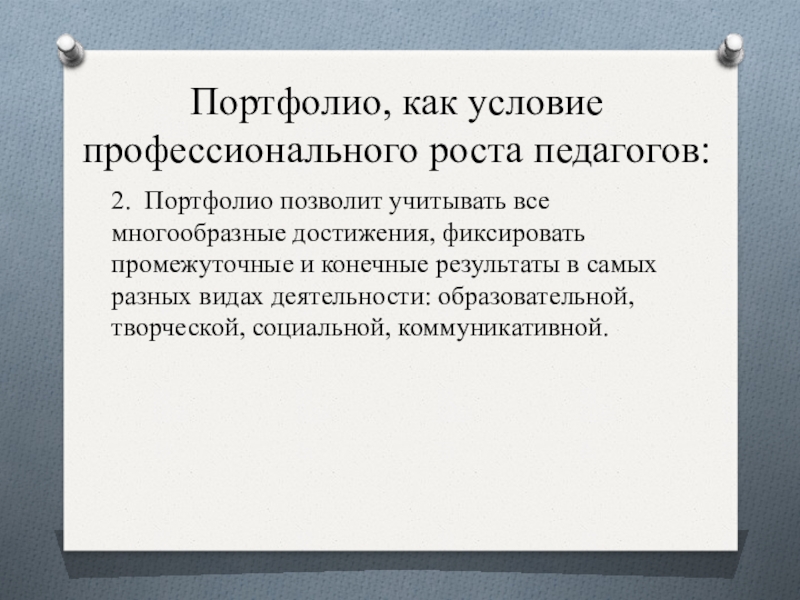 Слайд 21Портфолио, как условие профессионального роста педагогов
