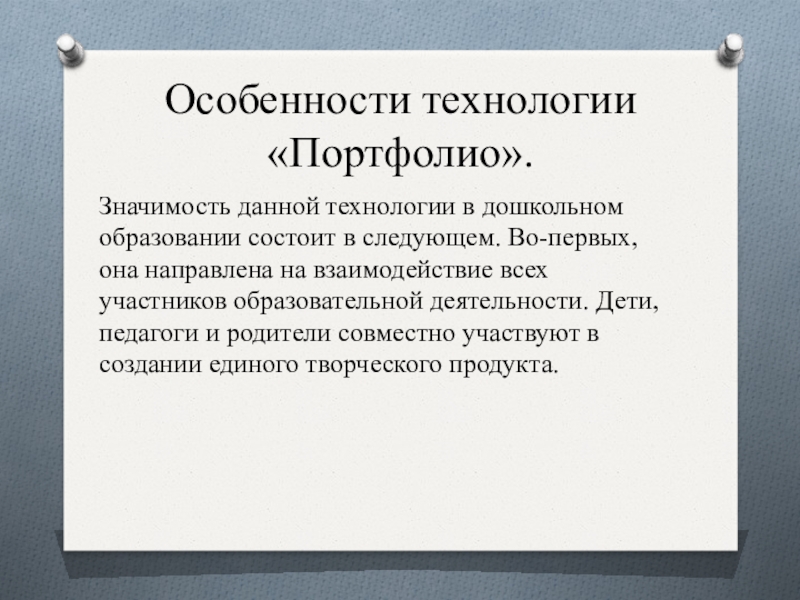 Слайд 4Особенности технологии «Портфолио».