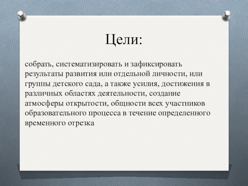 собрать, систематизировать и зафиксировать результаты развития или отдельной личности, или группы