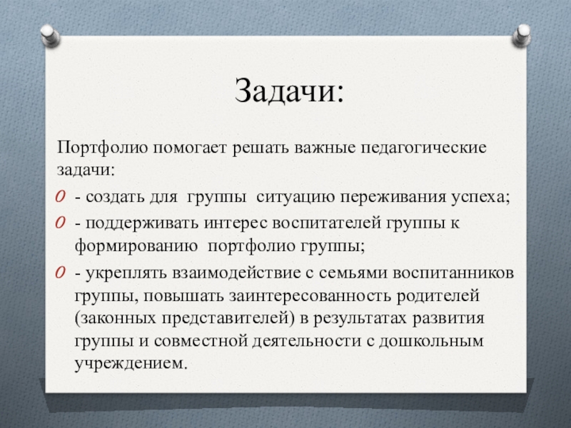 Портфолио помогает решать важные педагогические задачи: