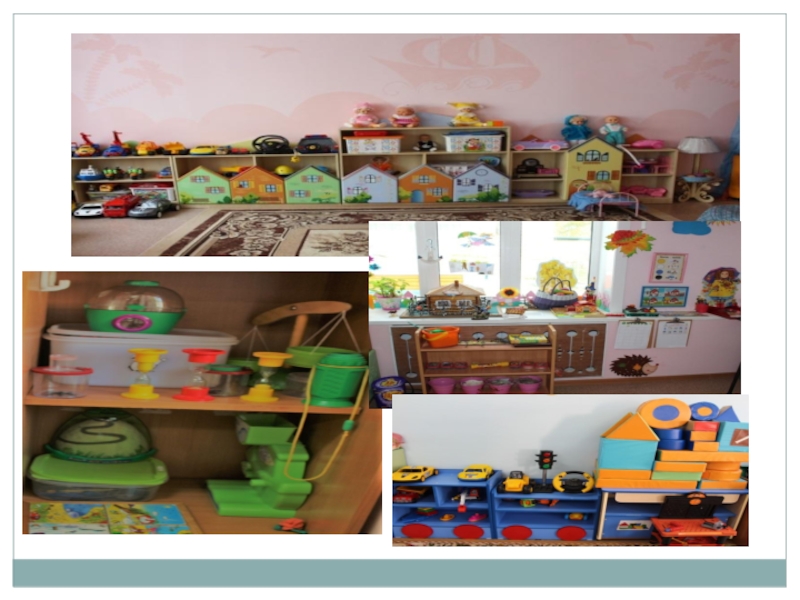 Пространство группы организовано в виде хорошо разграниченных зон оснащенных большим количеством развивающих материалов.