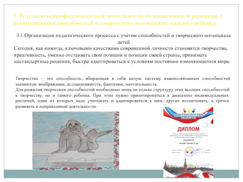 3.1.Организация педагогического процесса с учетом способностей и творческого потенциала детей