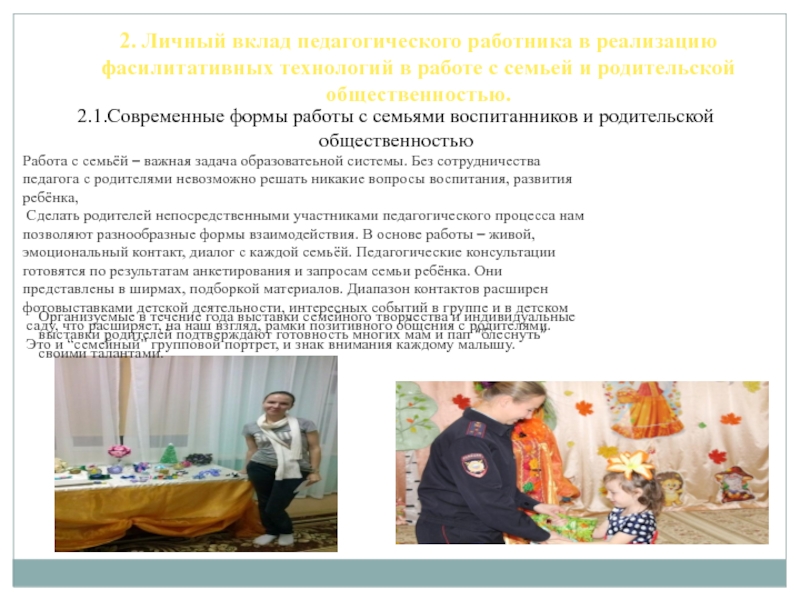2.1.Современные формы работы с семьями воспитанников и родительской общественностью