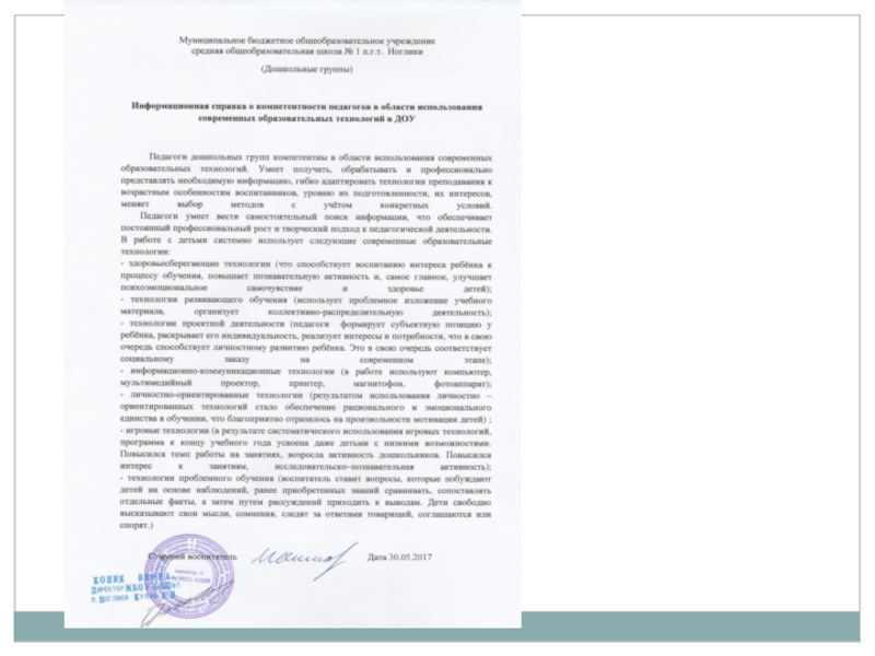 Применений ИТК в дошкольных группах при МБОУ СОШ №1