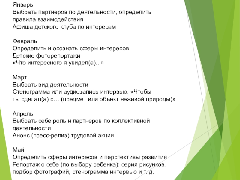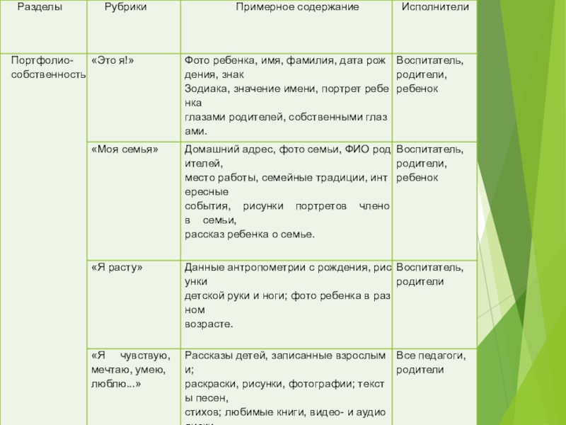 Слайд 31План поддержки детской инициативы через работу с детским портфолио (портфолио интересов)