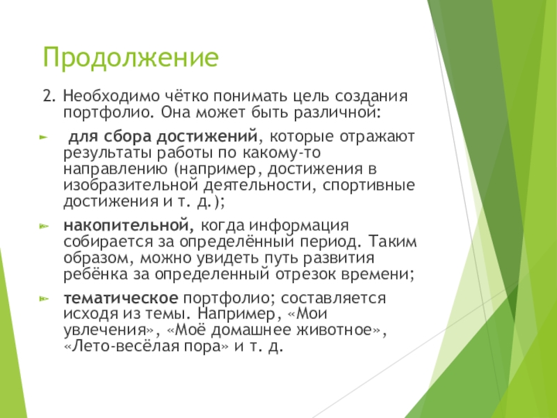 2. Необходимо чётко понимать цель создания портфолио. Она может быть различной:
