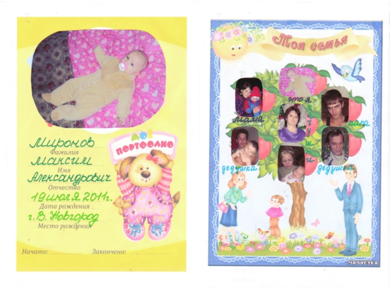 тематическое портфолио; составляется исходя из темы. Например, «Мои увлечения», «Моё домашнее животное», «Лето-весёлая пора» и т. д.