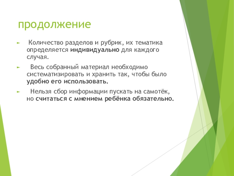 накопительной, когда информация собирается за определённый период. Таким образом, можно увидеть путь развития ребёнка за определенный отрезок времени;