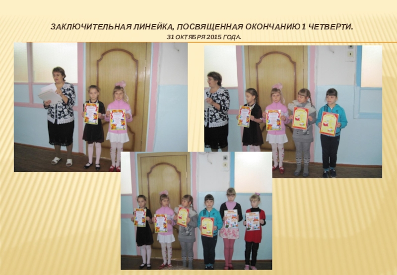 Слайд 17Заключительная линейка, посвященная окончанию 1 четверти.