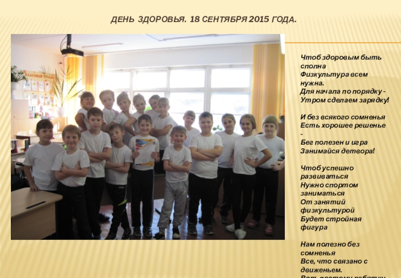 Слайд 7День ЗДОРОВЬЯ. 18 сентября 2015 года.