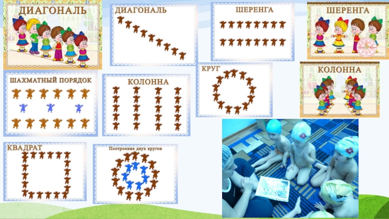 схемы и карточки для подвижных игр, строевых перестроений и построений;