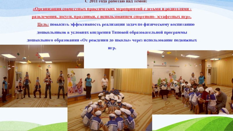детьми и родителями - развлечения, досуги, праздники, с использованием спортивно- эстафетных игр».
