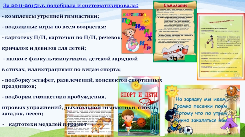 Слайд 9 За 2011-2015г.г. подобрала и систематизировала: