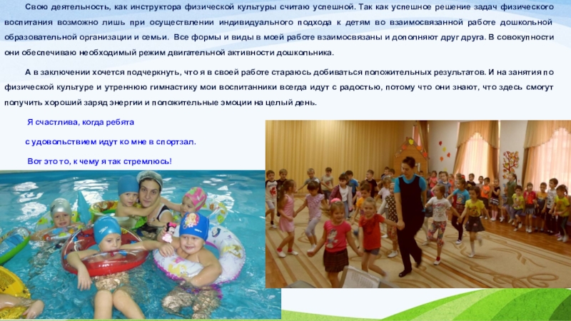 Слайд 25Свою деятельность, как инструктора физической культуры считаю успешной. Так как успешное