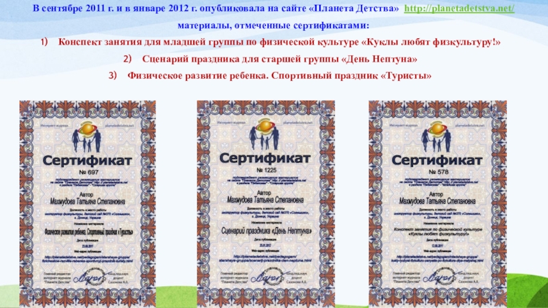На этом сайте добавляю материал, и отмечена следующими свидетельствами: