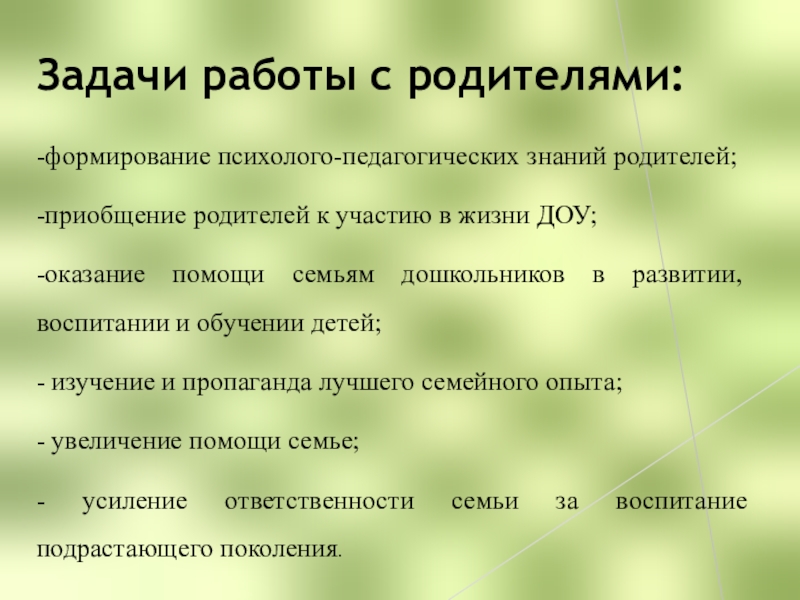 - усиление ответственности семьи за воспитание подрастающего поколения.