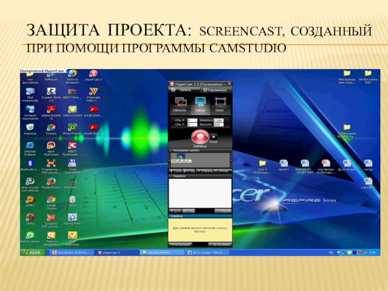 Слайд 23Защита проекта: Screencast, созданный при помощи программы CamStudio