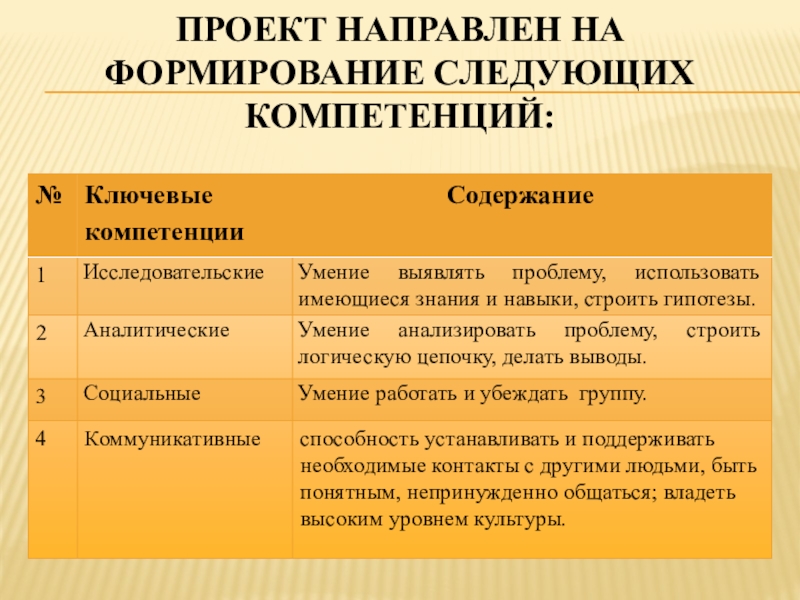 Проект направлен на формирование следующих компетенций: