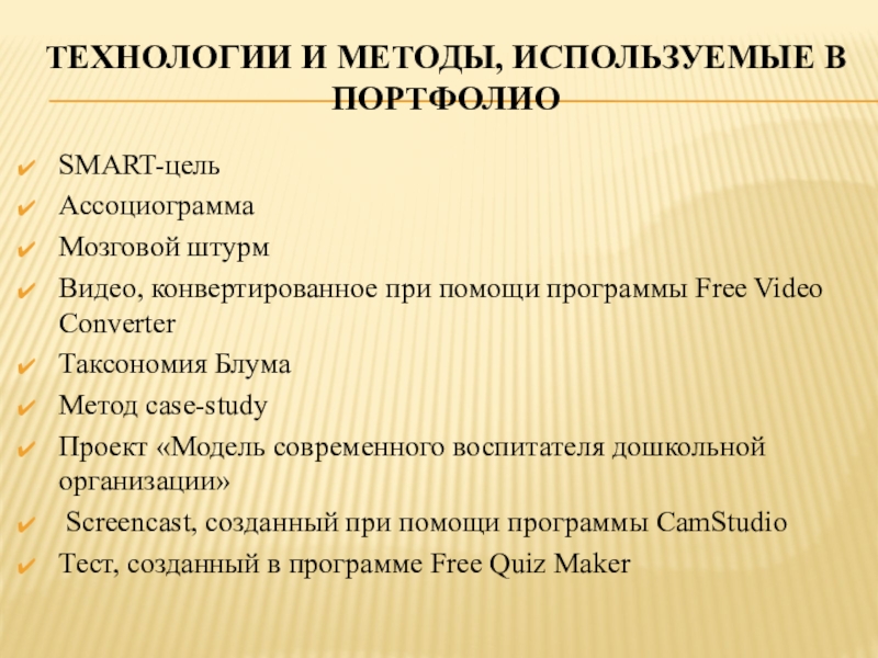 Слайд 3Технологии и методы, используемые в портфолио