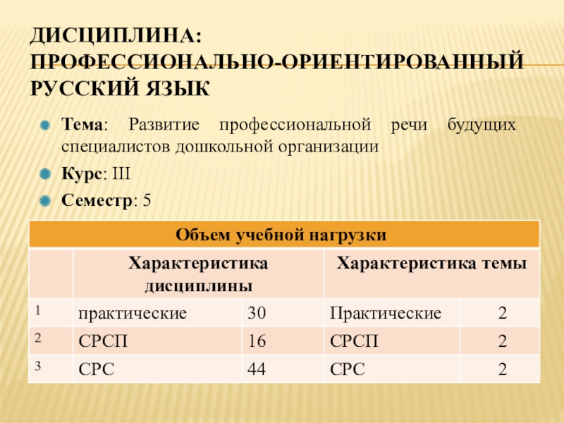 Тема: Развитие профессиональной речи будущих специалистов дошкольной организации