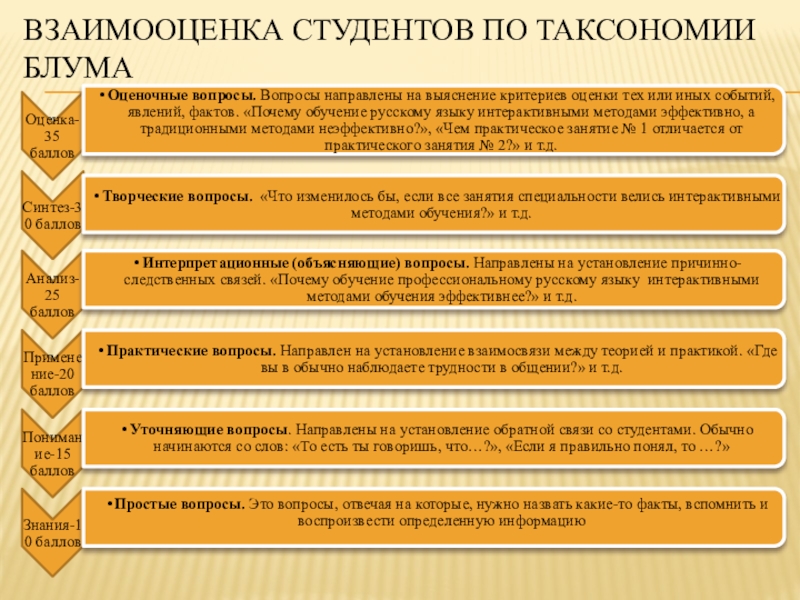 Слайд 11Взаимооценка студентов по таксономии Блума