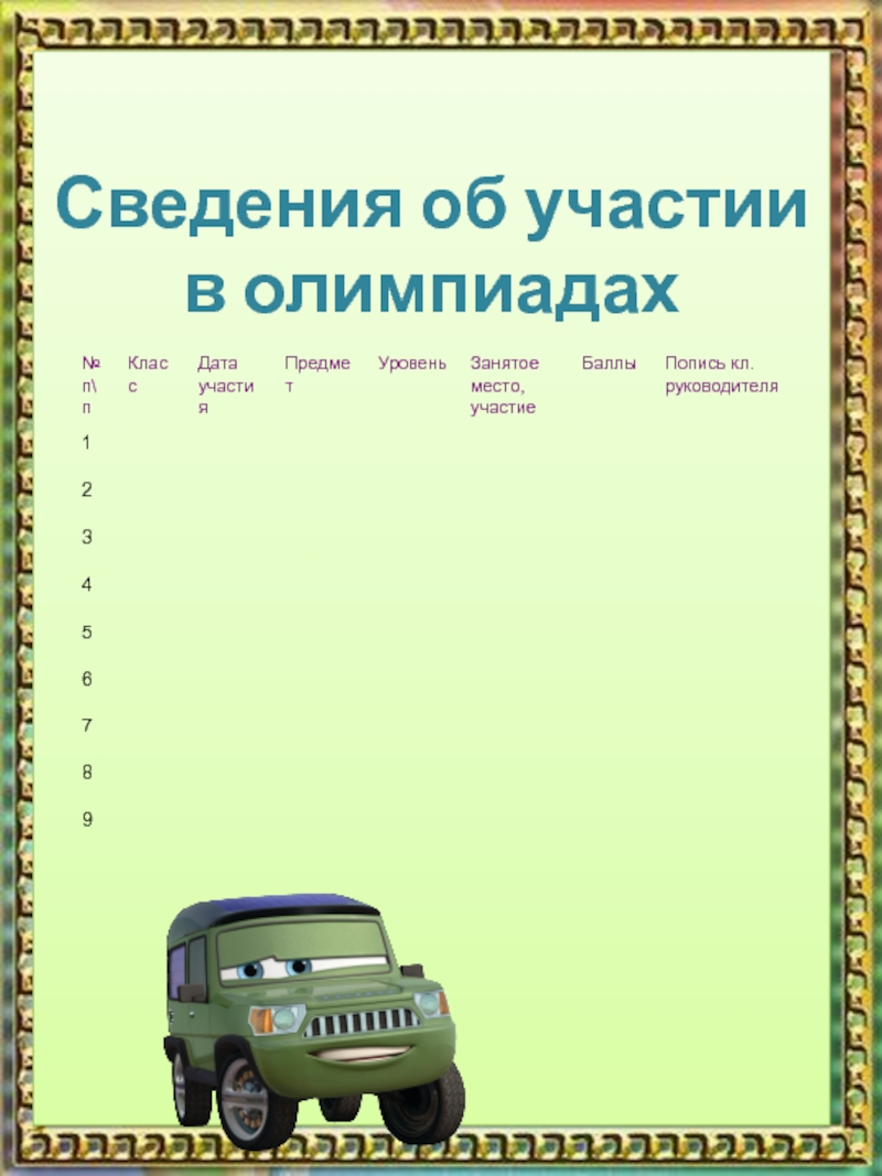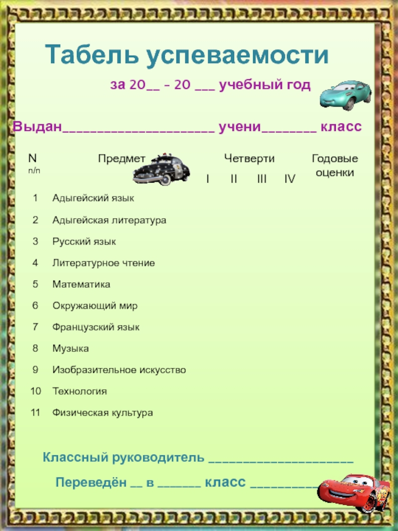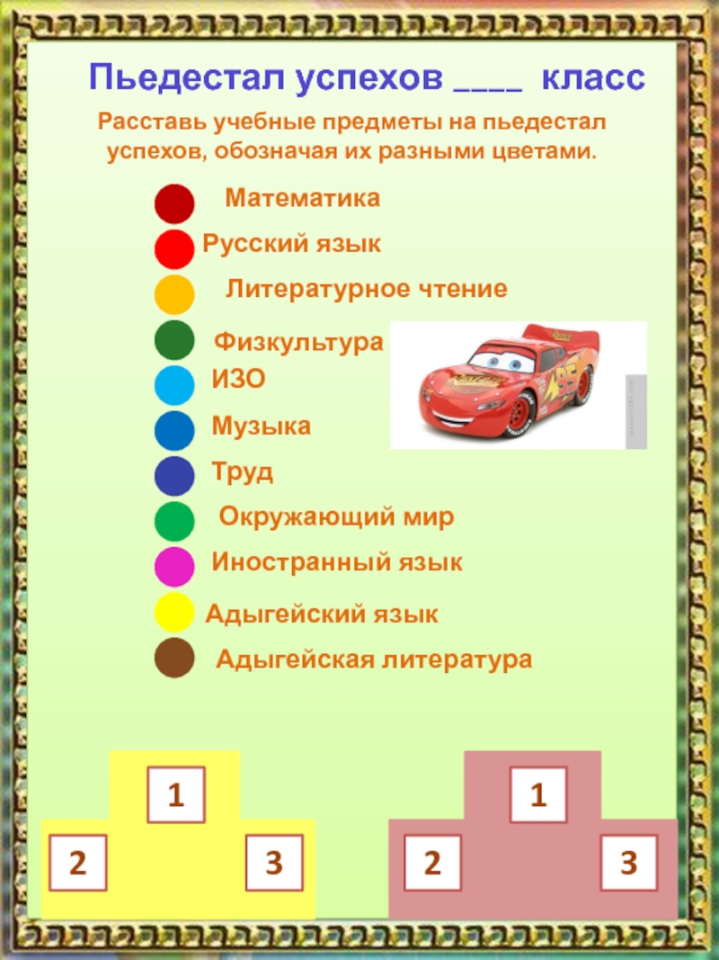 Расставь учебные предметы на пьедестал успехов, обозначая их разными цветами.