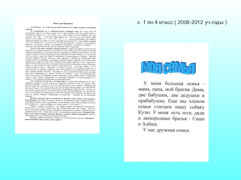 Слайд 2 с 1 по 4 класс ( 2008-2012 уч.годы )