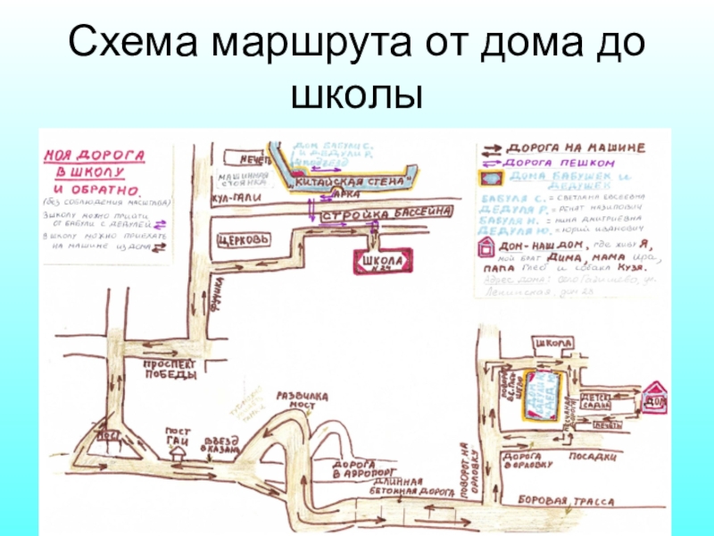 Схема маршрута от дома до школы