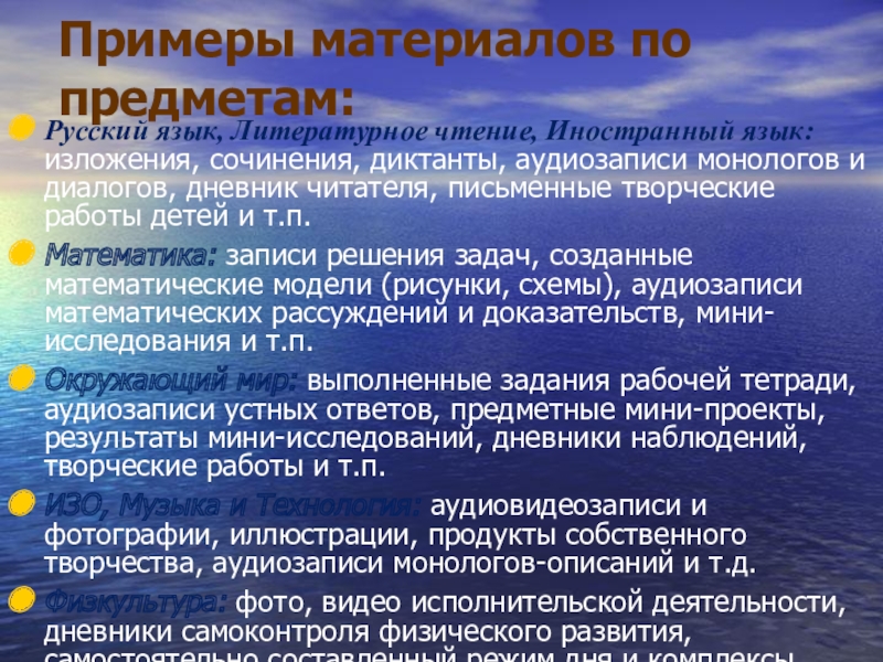 Слайд 20Примеры материалов по предметам:
