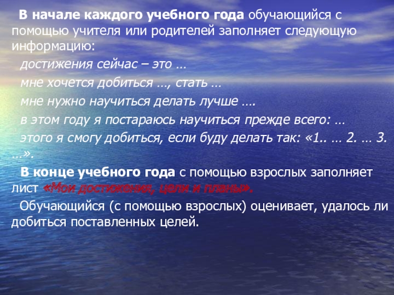 Слайд 17 В начале каждого учебного года обучающийся с помощью
