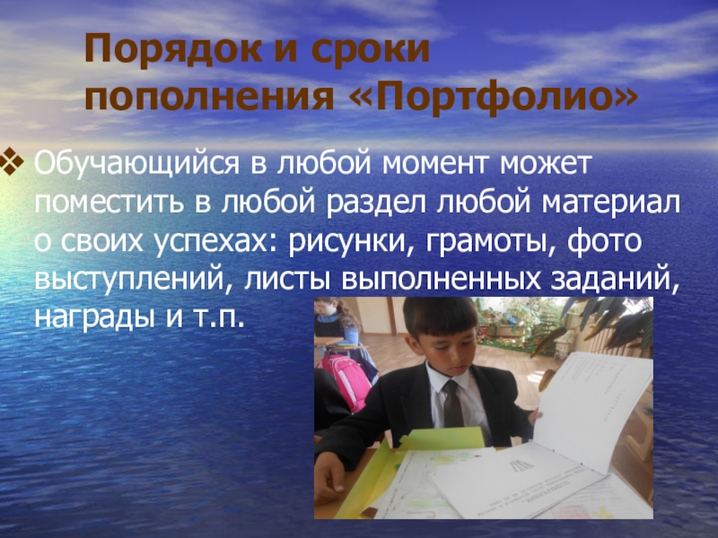 Слайд 11Порядок и сроки пополнения «Портфолио»