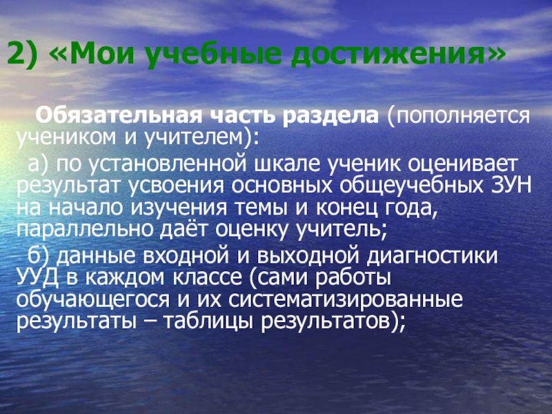 Слайд 182) «Мои учебные достижения»