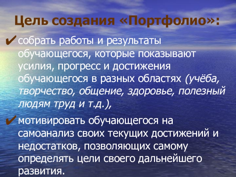 Слайд 3Цель создания «Портфолио»: